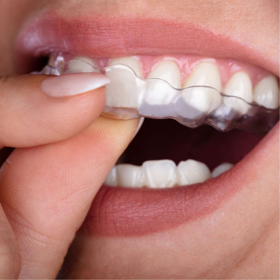 Aparelho ortodôntico transparente e removível para alinhamento dos dentes de forma discreta e confortável.
